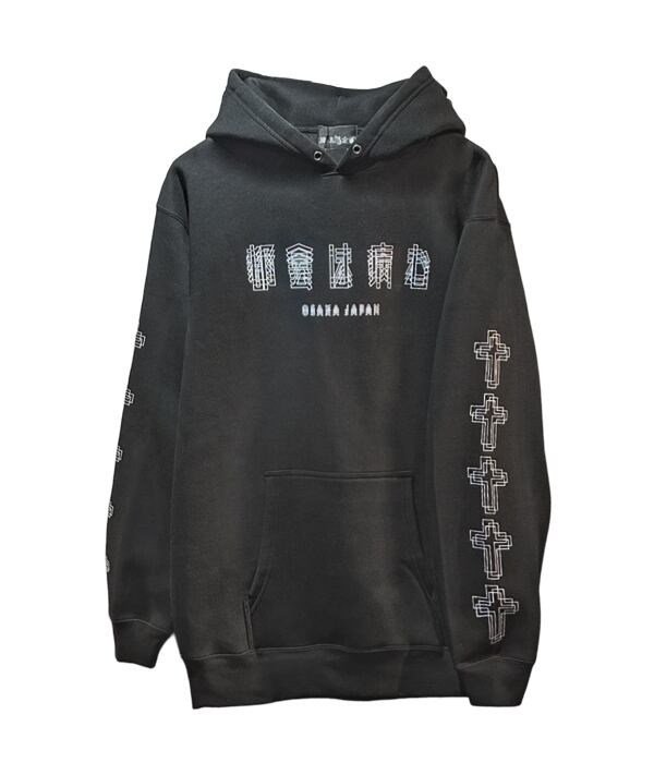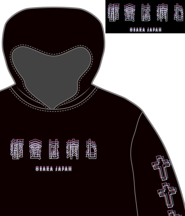 フロントに都会は病むロゴと袖部分には印象的なクロスモチーフを配置し、存在感のある一着に仕上げました。
