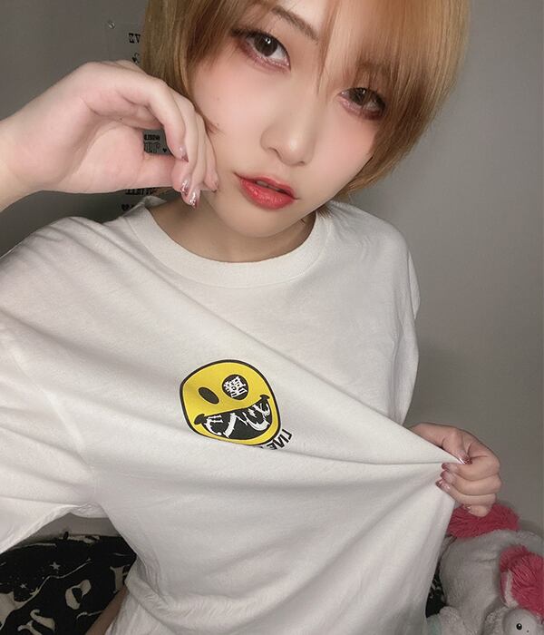 胸元のメンヘラにこちゃんマークがベリーベリーキュートなTシャツです。