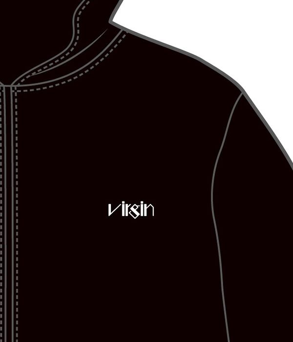 バックプリントの少女の周りには、処女にまつわるたくさんの言葉がちりばめられています。