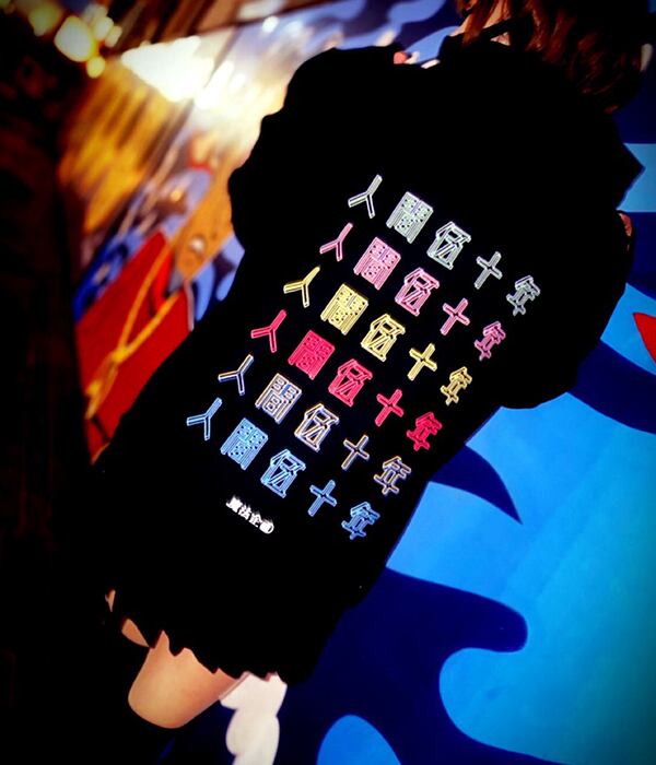 バックプリントには、六色に色変えされた「人間五十年」の文字が並んでおります。
