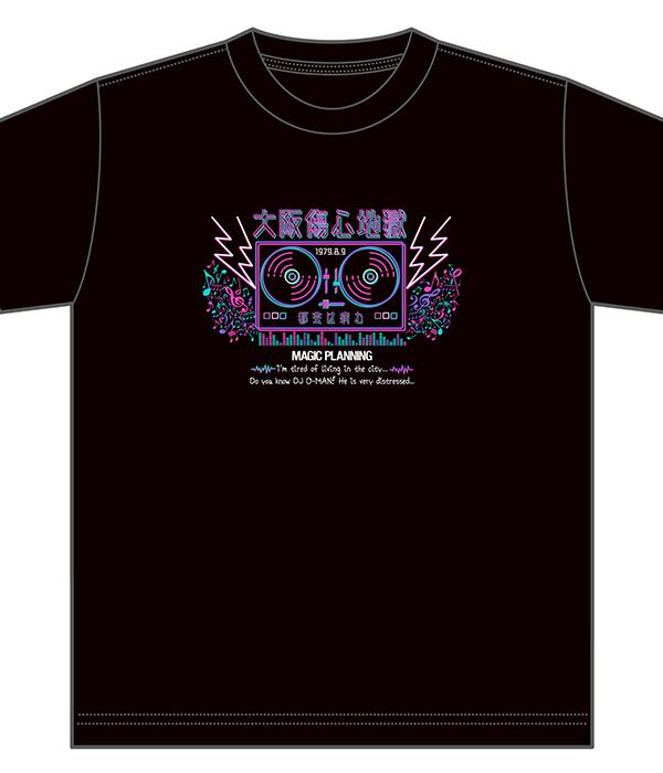 音楽をイメージしたネオンカラーのデザインはもちろん、後ろ部分の「大阪傷心地獄」のロゴにも注目☆